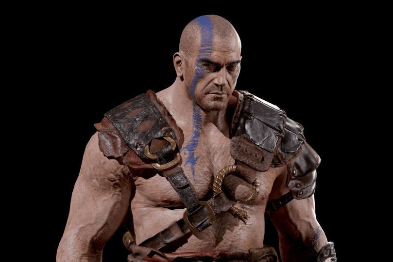 The massive battleaxe came to rest at the side of its colossal wielder, a bare chested man seemingly made of nothing but chiseled muscle and battle scars. He stood amongst the fresh corpses of five of the enormous bipeds. Puffs of fog blew from his mouth as he eased out of the battle-high with slow, controlled breaths.